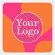 Hot Pink and Orange Abstract Pattern with Logo Square Sticker