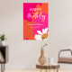 Hot Pink and Orange Floral Happy Birthday Party Poster
