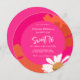 Customisable hot pink and orange abstract with white retro daisy floral design. Birthday party invitation customisable with any desired age, name and party details.