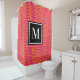 Hot Pink and Orange Greek Key Black White Monogram Shower Curtain