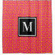 A hot pink and orange Greek key maze pattern with a black and white single letter monogram.