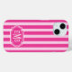 Customize this hot pink and pink striped iPhone 15 case with your initials in a modern CAP font in white on hot pink. It's so modern and trendy yet preppy and classic!
