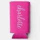 Hot pink and white modern girly calligraphy name on a slim seltzer can cooler.