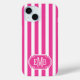 Hot Pink and White Monogrammed Stripes Case-Mate iPhone Case