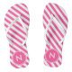NewParkLane - Monogrammed Flip flops, with bright hot pink diagonal stripes, and a round frame for your initials or personalised text.