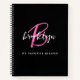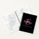 This personalised recipe notebook features a monogram and first name in modern hot pink and white script on a black background, with the additional text in white sans serif font below.