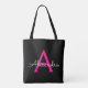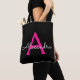 Hot Pink Black Girly Script Monogram Name Modern Tote Bag