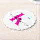 Hot Pink Black Initial Name Monogrammed Paper Coaster