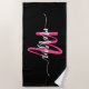 Hot Pink Black Modern Script Girly Monogram Name Beach Towel