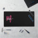 Hot Pink Black Modern Script Girly Monogram Name Desk Mat