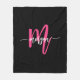 Hot Pink Black Modern Script Girly Monogram Name Fleece Blanket