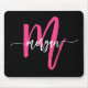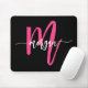 Hot Pink Black Modern Script Girly Monogram Name Mouse Pad