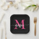 Hot Pink Black Modern Script Girly Monogram Name Paper Plate