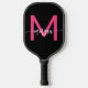 Hot Pink Black Modern Script Girly Monogram Name Pickleball Paddle