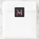 Hot Pink Black Modern Script Girly Monogram Name Square Sticker