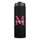 Hot Pink Black Modern Script Girly Monogram Name Thermal Tumbler