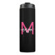 Hot Pink Black Modern Script Girly Monogram Name Thermal Tumbler