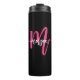 Hot Pink Black Modern Script Girly Monogram Name Thermal Tumbler