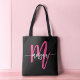 Hot Pink Black Modern Script Girly Monogram Name Tote Bag
