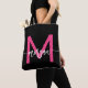 Hot Pink Black Modern Script Girly Monogram Name Tote Bag