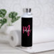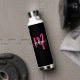 Hot Pink Black Modern Script Girly Monogram Name Water Bottle
