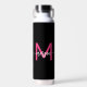 Hot Pink Black Modern Script Girly Monogram Name Water Bottle