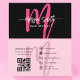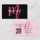 Hot Pink Black Modern Script QR Code Monogram Name Business Card