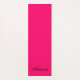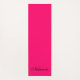 This hot pink yoga mat features black script typography that says 'Namaste'.