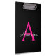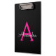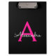 Hot Pink Black Script Girly Monogram Name Clipboard