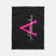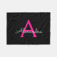 Hot Pink Black Script Girly Monogram Name Fleece Blanket