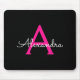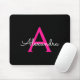 Hot Pink Black Script Girly Monogram Name Mouse Pad