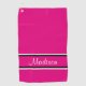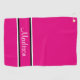 This design has a solid background colour of hot pink with hot pink, black and white stripes. The name is in a script font and can be customised using the template field.