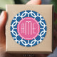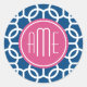 Hot Pink & Blue Geometric Pattern Monograms Classic Round Sticker