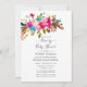 Boho chic hot-pink and blue watercolor floral drive through bridal or baby shower invitation.