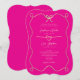 Make a bold statement with this chic hot pink wedding invitation featuring an elegant white ribbon illustration framing your text. The stylish bracket-cut shape adds flair and sophistication, while the script and serif fonts keep the layout modern yet romantic. This vibrant design is perfect for couples planning a fashionable celebration, from glam soirées to playful summer weddings. Fully customisable to match your personal style and wedding details.