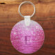 Hot Pink Brushed Metal Silver Glitter Monogram Key Ring