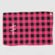 Hot pink buffalo check printed golf towel with your initial in pale pink and last name in white.