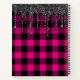 Hot Pink Buffalo Plaid Black Glitter Drips Notebook