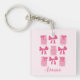 Hot Girls Love Pickles! This keychain features a playful, hot pink pickle jar and bow grid graphic on a soft pink background. Within each square of the grid, alternating graphics of adorable pickle jars and bows add a touch of whimsy and fun. A perfect blend of the coquette bow and pickle trends! Personalisation is featured in a sweet hot pink script font across the bottom of the graphic. Makes a truly unique and delightful gift for yourself or any pickle loving girl or woman in your life.