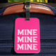 Spot your travel bag with this bright pink funny luggage tag saying with the words 'mine mine mine' in a modern bold typography. You can change the color of the background by clicking on the customize it button.