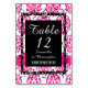 Hot Pink damask and black Table Number