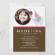 Hot Pink Elephant and Cupcake Photo Birthday Invitation