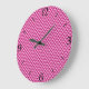 Hot pink, enamel look, studded grid large clock