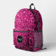 Hot pink glitter sparkles Monogram Printed Backpack. Cool fashion accessory bag for her. Beautiful girly glamourous shiny glitters sparkles design. Photo of sparkles, not real glitter! Create a unique and personalised backpack with a custom touch! Modern monogram with your initial and your name for that extra personal flair.