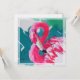 Original silk painting of a flamingo. Impresionist style with bright colours of pink and teal. Lovely for many occasions.