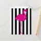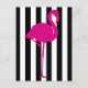 Hot Pink Flamingo on Black and White Stripes Postcard