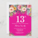 Hot Pink Floral 13th Birthday Invitation