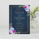 Hot Pink Floral Bronz Navy Blue Rustic Wedding Invitation