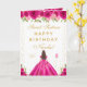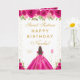 Hot Pink Floral Brunette Hair Girl Sweet Sixteen Card