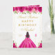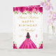 Hot Pink Floral Dark Skin Girl Sweet Sixteen Card